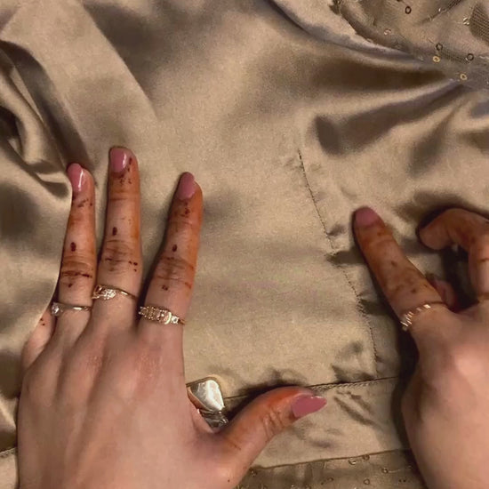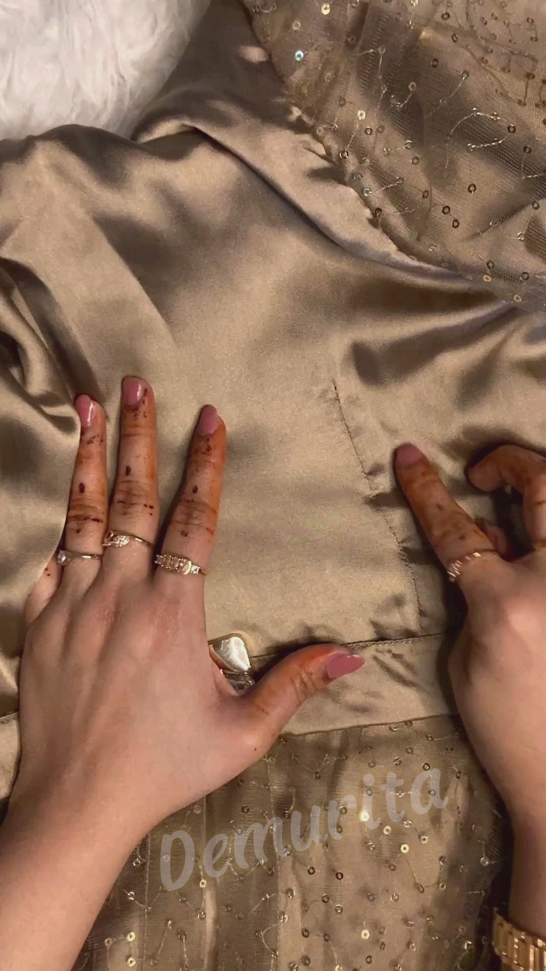 Sleeves: Full-length puffed sleeves crafted from golden sequin-lined net, complete with a soft lining for hijab-friendly coverage.